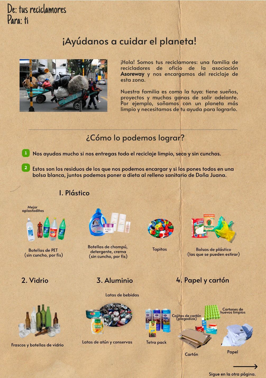 Separar estos materiales de forma adecuada facilita el reciclaje y apoya directamente la labor de los recicladores de oficio.